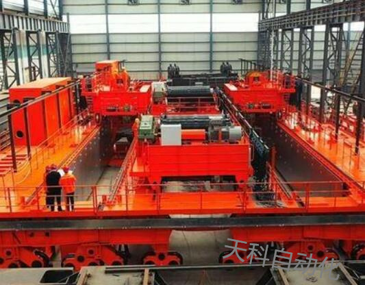 重機(jī)采用掛梁吊運(yùn)長(zhǎng)件鋼坯、板材、棒材、盤(pán)圓等物品,配置電磁吸盤(pán)或夾鉗或特殊群鉤進(jìn)行吊裝,主要由箱形橋架、起重小車(chē)、大車(chē)運(yùn)行機(jī)構(gòu)、司機(jī)室和電氣控制系統(tǒng)組成,配有停電保磁系統(tǒng)。起升機(jī)構(gòu)多采用單電機(jī)、雙減速器、雙卷筒布置,呈雙吊點(diǎn)形式。掛梁布置形式分垂直于主梁或平行于主梁兩種。其余形式與QD型起重機(jī)相同